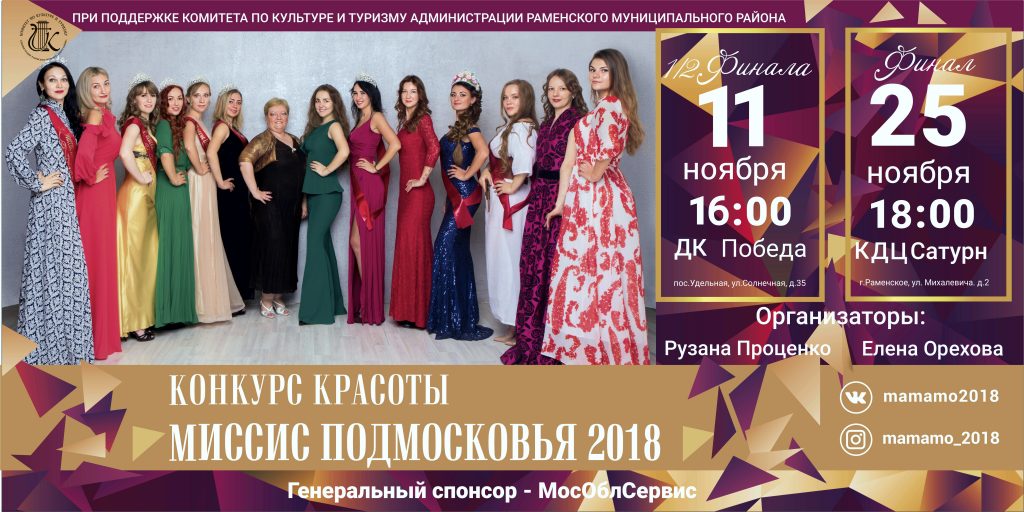 Финал состоится 25 ноября в КДЦ «Сатурн» г.Раменское. Зрители увидят лучшие номера, награждение победительниц и станут участниками праздника в честь Дня матери.
