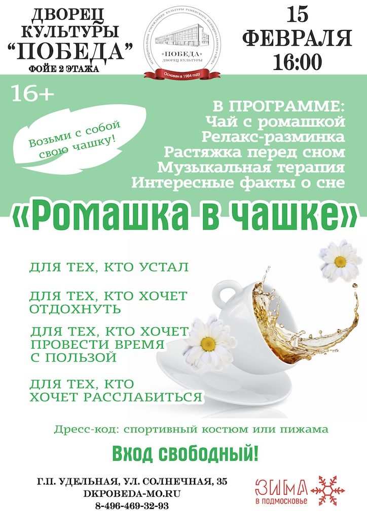 Он называется «Ромашка в чашке» и создан для тех, кто хочет отдохнуть и расслабиться, отключиться от суеты и просто помечтать!