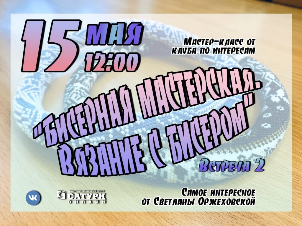 В 12:00 – «Бисерная мастерская. Вязание с бисером»