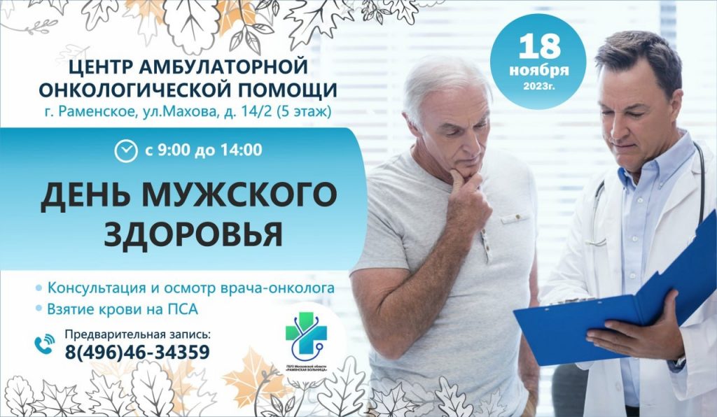 В рамках Дня открытых дверей пройдет осмотр и консультация врача-онколога, взятие анализа крови на ПСА.