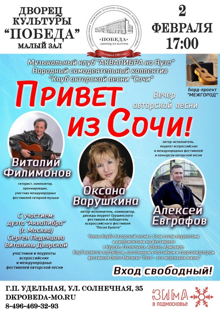 Члены Клуба Авторской песни г. Сочи стали лауреатами и дипломантами на