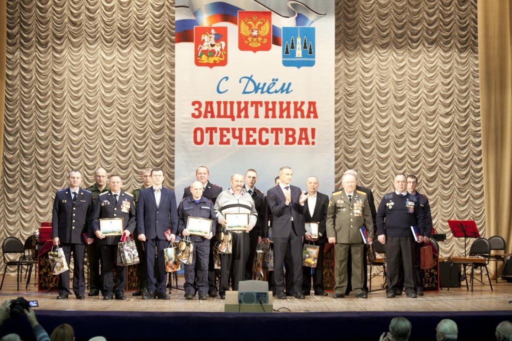 Праздник начался прямо в фойе: с выставки фотографий «Взгляни войне в глаза» и полевой кухни с горячим чаем и выпечкой. А когда в зале погас свет, то на сцену вышли дети. Они читали стихи, пели. Им достанутся необъятные просторы нашей Родины, а также долг и честь их защищать. Об этом говорили: глава района Андрей Кулаков в своем видеообращении, 1-ый заместитель главы администрации района Николай Воробьев, военком Олег Тарасов, председатель Совета ветеранов Надежда Желтухина, участник ВОВ, председатель Совета ветеранов 100-ой Свирской дивизии Владимир Ильич Финогеев. Приятная и традиционная церемония награждения прошла в атмосфере удивительного единения и сплоченности, гордости и уважения к тем, кто служит в Армии и полиции, спасает и учит воинскому делу молодое поколение. И как показывает жизнь, место подвигу есть всегда. В декабре 2017г. случайные прохожие – Юлия Миронова и Виктор Самохвалов спасли жизнь человеку, который провалился в полынью Кратовского озера. Полковник Александр Горбачев вручил им медали МЧС.