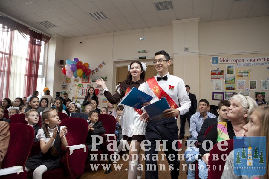 Актовый зал школы №19 был превращен в концертный зал международного кинофестиваля. Идущих по красной фестивальной дорожке выпускников этого года зрители встречали бурными аплодисментами. Их приветствовал глава Раменского муниципального района В.Ф.Демин, председатель районного комитета по образованию Н.А.Асеева, директор школы Н.Н.Накрайникова.