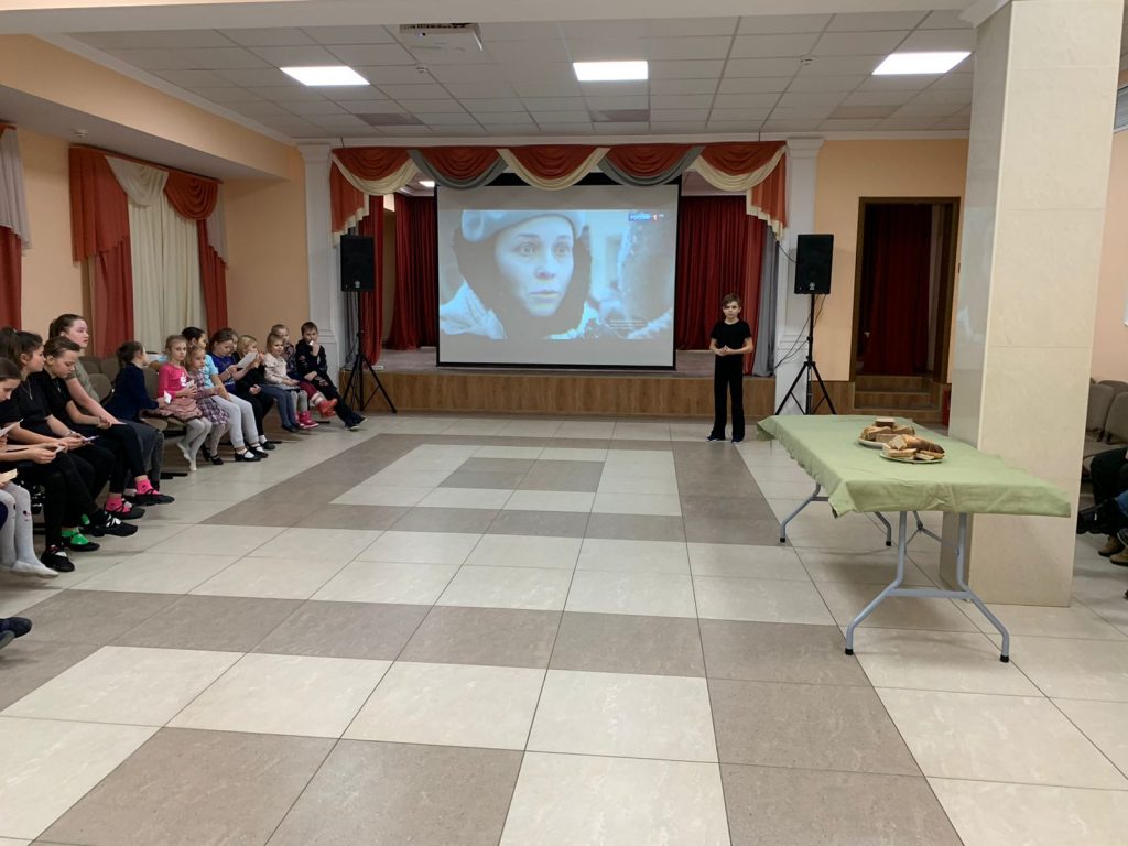 Из рассказа присутствующие узнали, что дети блокадного Ленинграда каждый день жили со страхом, но были отважнее даже некоторых взрослых. Никто не готовил беззаботных и жизнерадостных детей к тем военным трудностям. Когда замкнулось блокадное кольцо, в Ленинграде оставались многие тысячи детей всех возрастов. Это страшно, когда, заходя в класс, ты видишь, как уменьшается численность ребят – слушаешь инструктаж по технике безопасности. 39 ленинградских школ работали без перерыва даже в самые тяжёлые дни блокады. В госпиталях пели для раненых, писали письма. Дети дежурили на улицах, тушили зажигательные бомбы на чердаках, выращивали овощи на грядках во дворах, ухаживали за беспомощными соседями.
