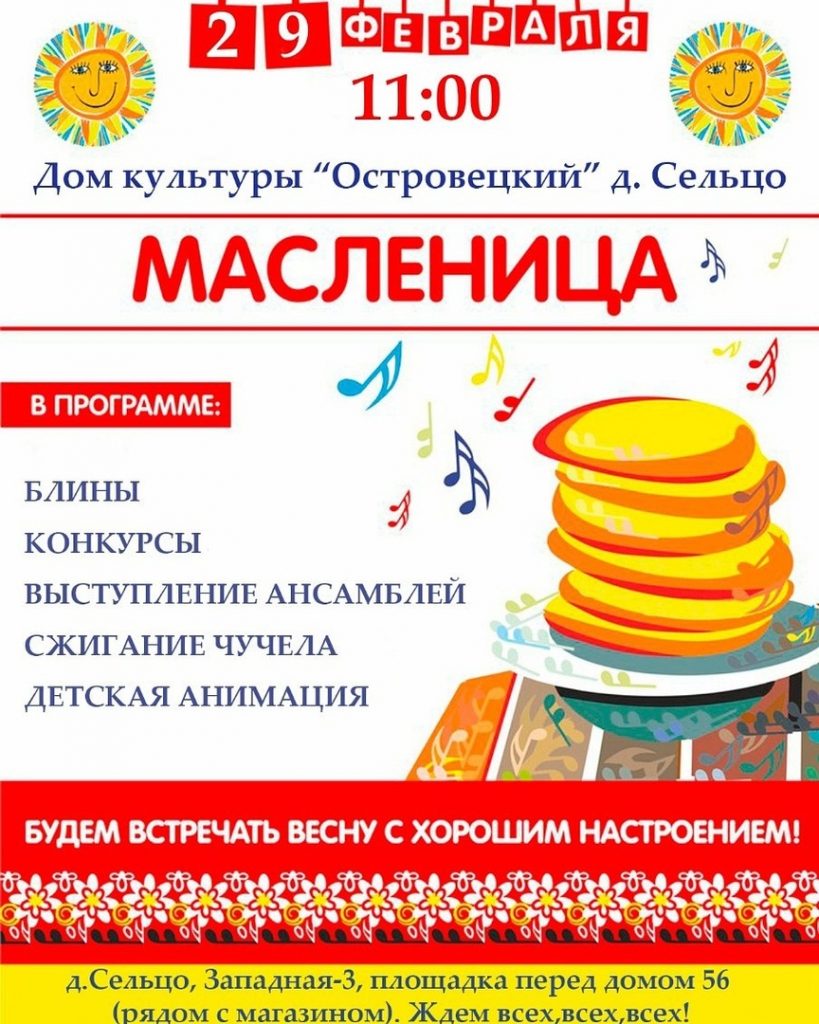 Веселье гарантируем!!! Ждем всех 29 февраля в 11.00 с.Сельцо (на площади у магазина)!