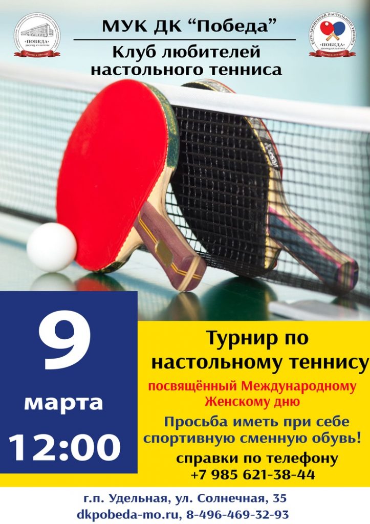 «Клуб любителей настольного тенниса» организует турнир, посвящённый Международному Женскому дню!