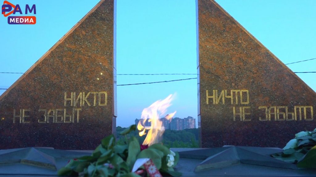 Память о раменцах, отдавших жизни в боях за Родину, почтили минутой молчания. После, собравшиеся возложили цветы и свечи к Вечному огню и стали участниками Всероссийского флешмоба #Встанем.