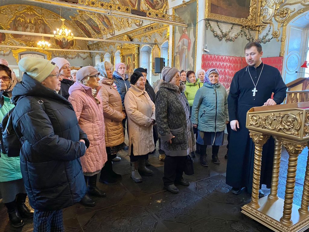 Экскурсию для пенсионеров провел отец Илья, подробно рассказавший об истории храмов, их архитектурных особенностях и роли местных купцов-благотворителей в строительстве.