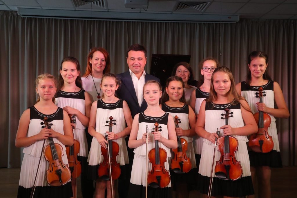 Губернатор пообщался с воспитанниками школы. Самыми яркими музыкантами являются обладатель уникального голоса альтино Фаррух Пиров, ставший стипендиатом премии Президента РФ в 2016 году, лидер рейтинга лучших учеников школы Анастасия Козлова и пятикратный стипендиат премии Губернатора Московской области Илья Рудометов.