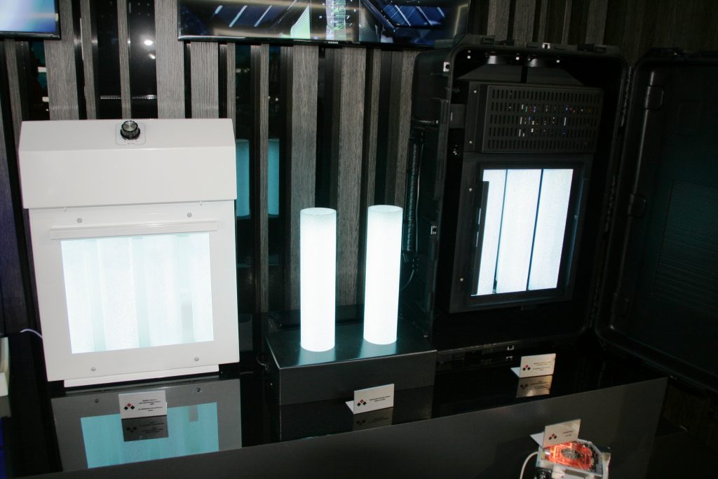 На объединённом стенде концерна предприятием будут выставлены новые модели очистителей-обеззараживателей, сборка которых началась на РПЗ в текущем году. Номенклатура изделий TIOKRAFT сегодня насчитывает шесть моделей. Они рассчитаны на использование в помещениях различной площади, а также на индивидуальное применение.