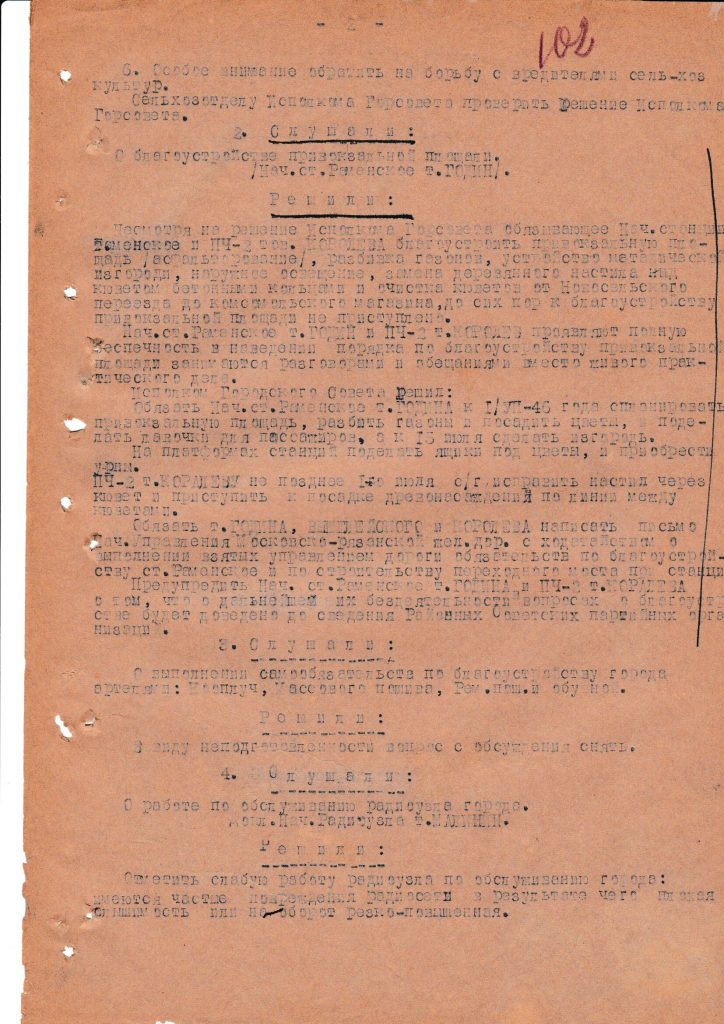Из решения следует, что руководство станции Раменское проявило беспечность по отношению к поставленным перед ними задачам. Городская власть обязала начальника станции осуществить разбивку газонов, установку металлической изгороди, наружного освещения, замену деревянного настила, посадку древонасаждений по линии между кюветами, а также предупредила о мерах, которые будут предприняты в случае невыполнения обязательств.