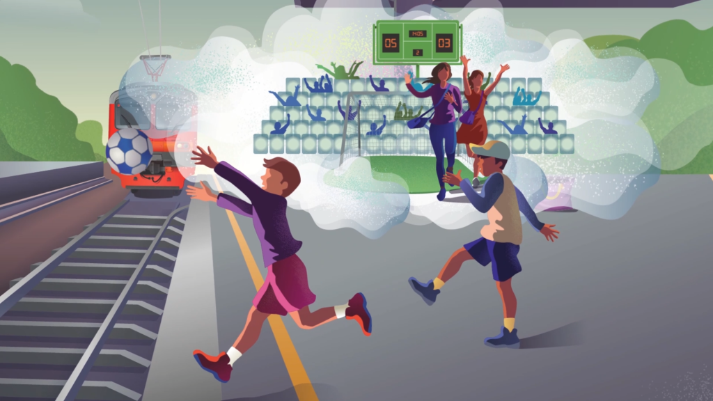 - Забудьте про наушники и телефон: при переходе через пути слух и зрение должны быть максимально сосредоточены на приближающихся поездах. Поезд, идущий со скоростью 100-120 км/ч, преодолевает 30 метров за секунду, а тормозной путь состава может достигать километра.