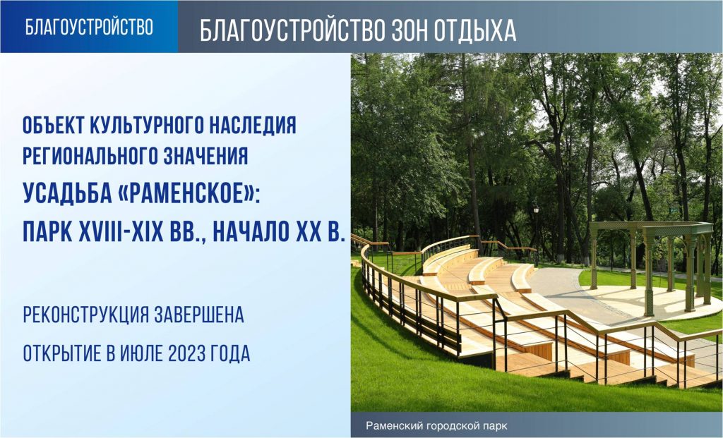 В фокусе благоустройства общественных пространств остается реконструкция Раменского городского парка культуры и отдыха.