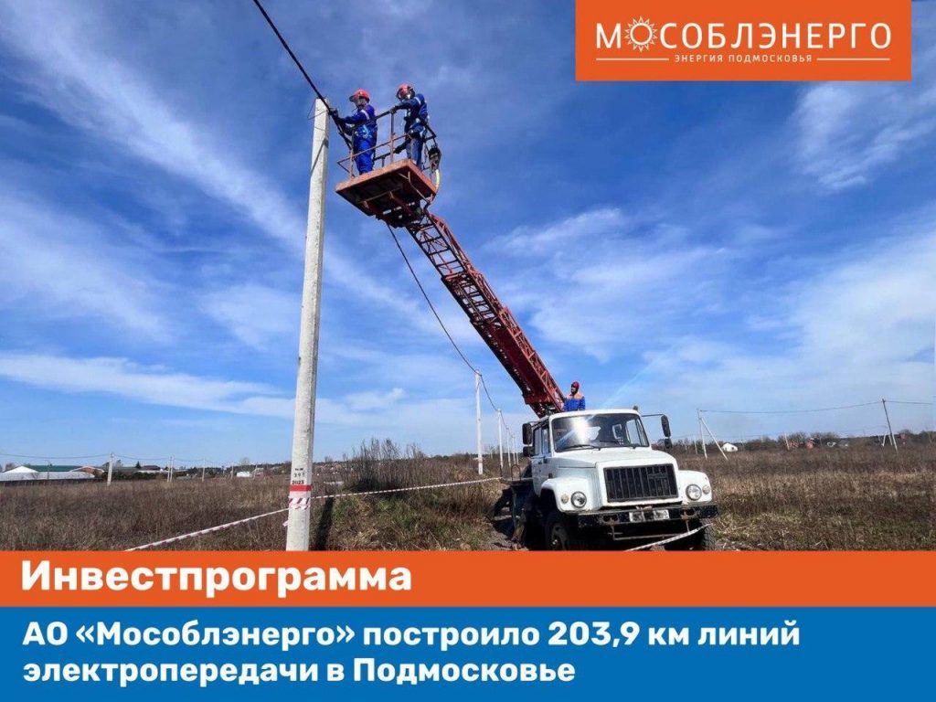 АО «Мособлэнерго» с начала 2023 года построило 203,9 км кабельных и воздушных линий электропередачи на территории Московской области в рамках инвестиционной программы, реализуемой каждым филиалом компании.