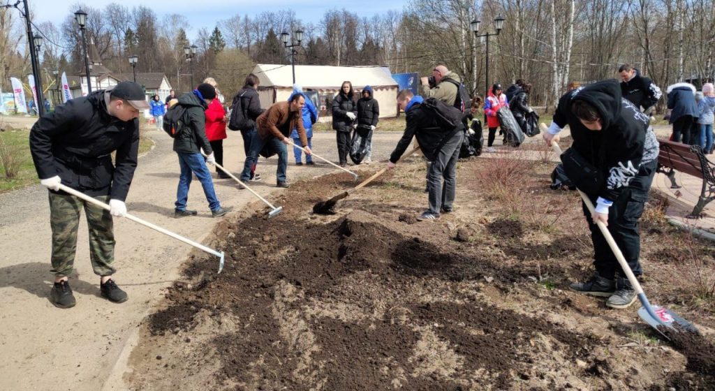 Кому-то досталось сгребать прошлогоднюю листву, кому-то готовить клумбы под высадку цветов. На особенно трудных участках, например, где стояла задача выровнять территорию, людям помогала техника.