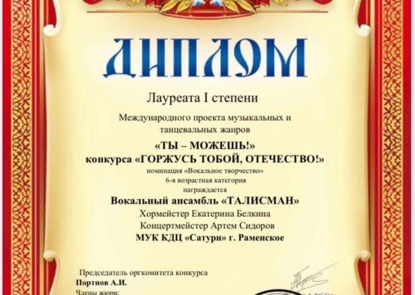 Вокальный ансамбль «Талисман» КДЦ «Сатурн» стал Лауреатом I степени в Международном проекте9 просмотров