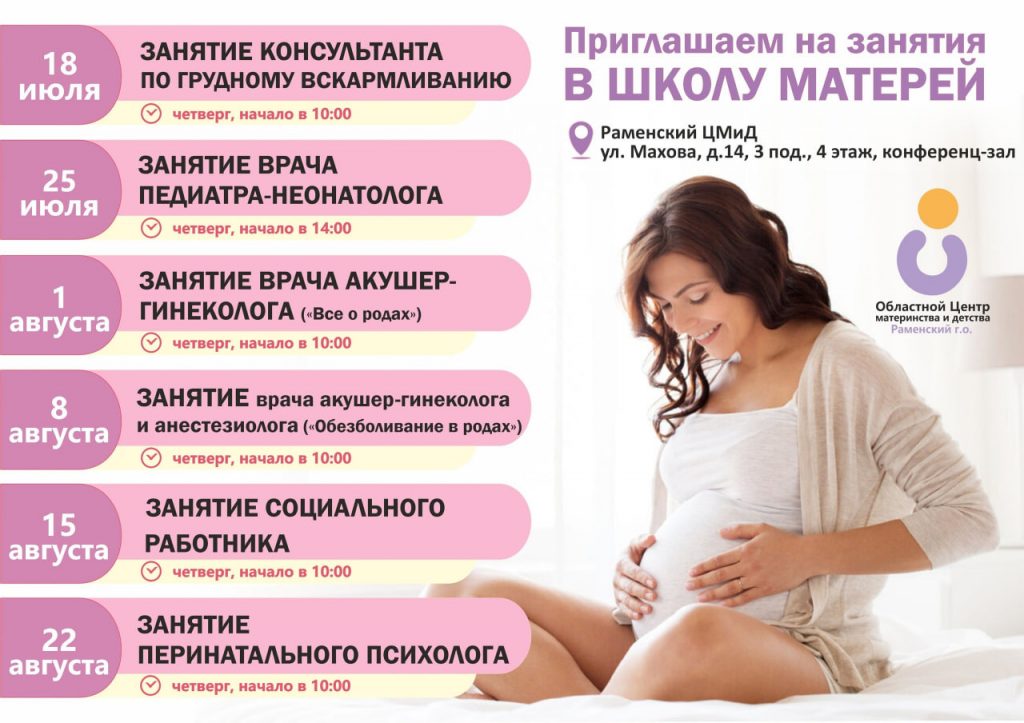 - 1 августа в 10:00 — занятие врача акушер-гинеколога на тему: «Все о родах».