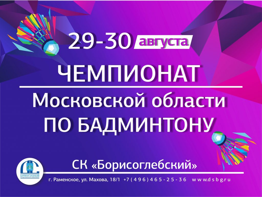 29 и 30 августа в большом и малом залах спорткомплекса пройдут Чемпионат и Первенство Московской области по бадминтону. Во взрослом турнире – чемпионате – ожидается участие порядка 60 спортсменов. В первенстве Московской области примут участие юноши и девушки до 17 лет, предварительно количество участников – порядка 80 человек.