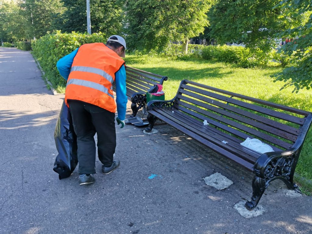 Силами МБУ «Содержание и благоустройство» ведется уборка бульваров, площадей, придомовых территорий и проездов, тротуаров нашего города