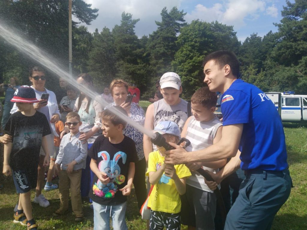В жаркий солнечный день дети поиграли с водой, представив себя пожарными, которые тушат воображаемое возгорание с помощью воды из пожарного автомобиля. Смех, улыбки и хорошее настроение — вот что получили дети от этого мероприятия, а главное — они узнали много нового и полезного.