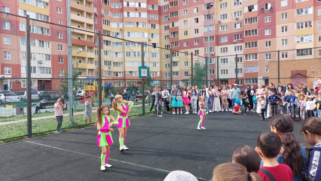 День двора проходил в д.Островцы на ул.Баулинской. В праздничной программе состоялись выступления коллективов ДК «Островецкий». Проводились творческие мастер-классы по рисункам и аппликациям, веселые игры и конкурсы. Спортивная школа подготовила показательные выступления по самбо и организовала соревнования по подтягиванию на турнике, отжиманию на брусьях и толканию гири. Музыкальное сопровождение и сладкие угощения подарили всем участникам мероприятия настоящее праздничное настроение.