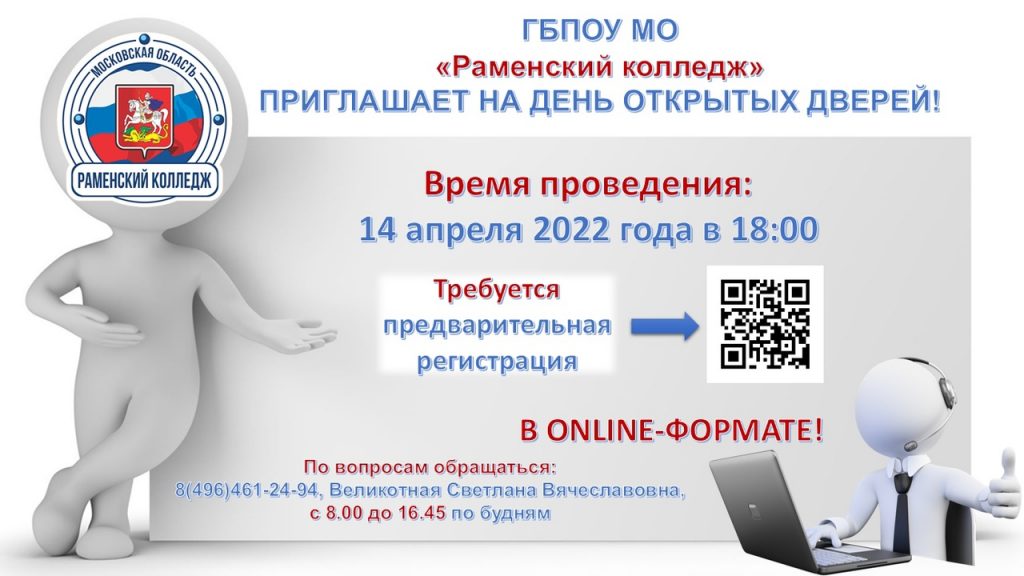 ГБПОУ МО «Раменский колледж» приглашает школьников и их родителей принять участие в Дне открытых дверей, который состоится 14 апреля в online-формате. Начало в 18-00.