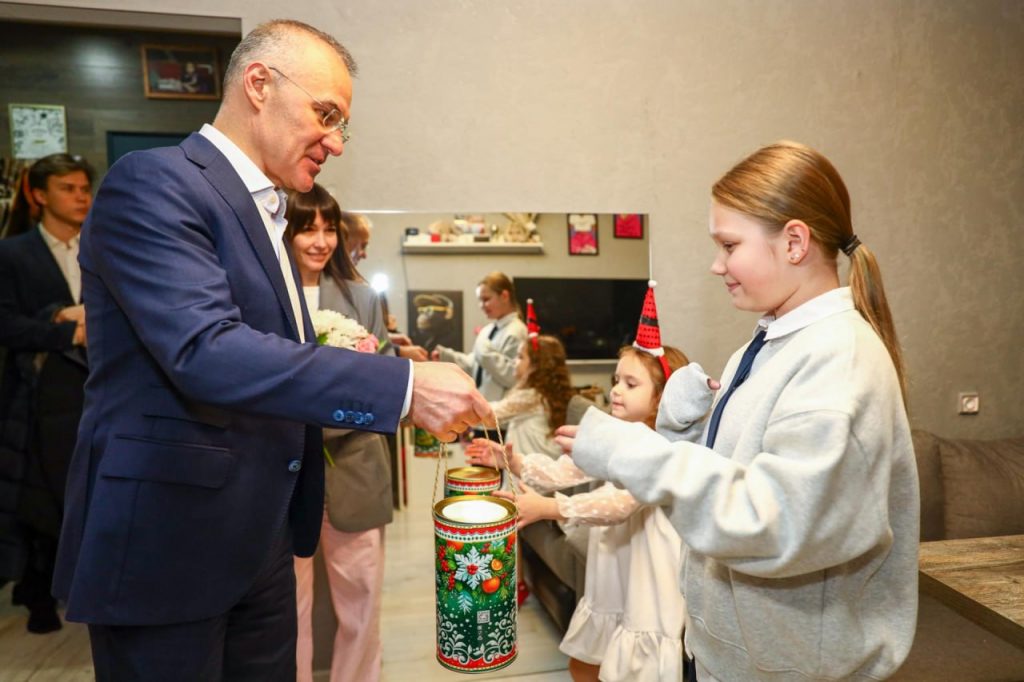 23 декабря депутат Государственной Думы РФ Александр Коган посетил семью Базановых. Юлия – супруга военнослужащего Евгения Базанова, в зоне проведения СВО он с самого начала мобилизации, бывает в отпуске, старается выходить на связь с родными. В семье подрастают две дочки – Дарина и София. Дарина учится в гимназии и увлекается танцами, а маленькая София еще ходит в детский сад. Девочки были рады получить заветные подарки.