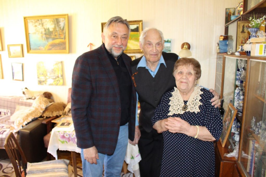 Олег Жолобов поздравил ветерана с наступающим праздником — Днём Победы и вручил ему памятный подарок.