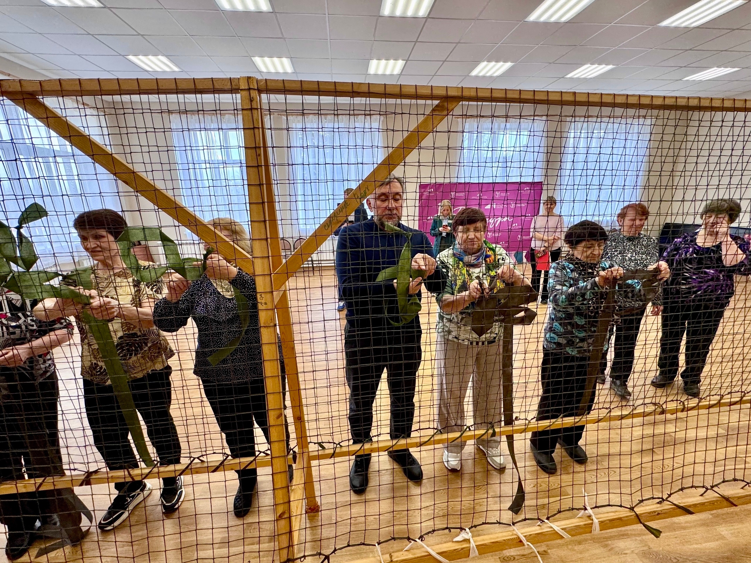 Также Олег Жолобов помог сплести ещё одну сеть и убедился, насколько профессионально и дружно работают женщины.