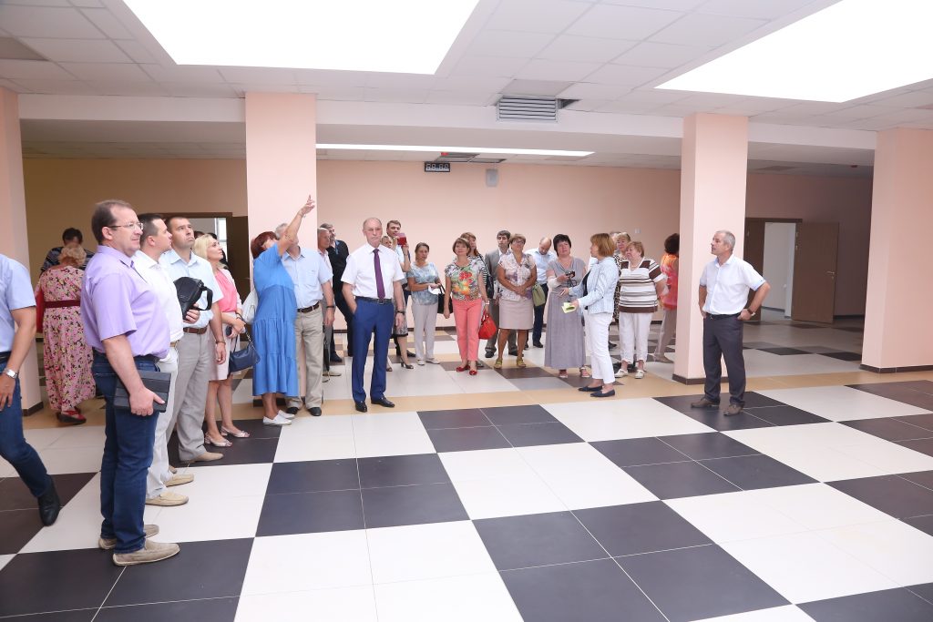 Депутаты посмотрели ход ремонтных работ, посетили классы, спортивный и актовый залы,помещение для библиотеки, строящийся стадион. Нужно отметить, что новое здание оснащено лифтом для детей с ограниченными физическими возможностями. В этом году предусмотрены и уже начаты работы по фасаду, таким образом, пристройка и основное здание будут смотреться единым целым.