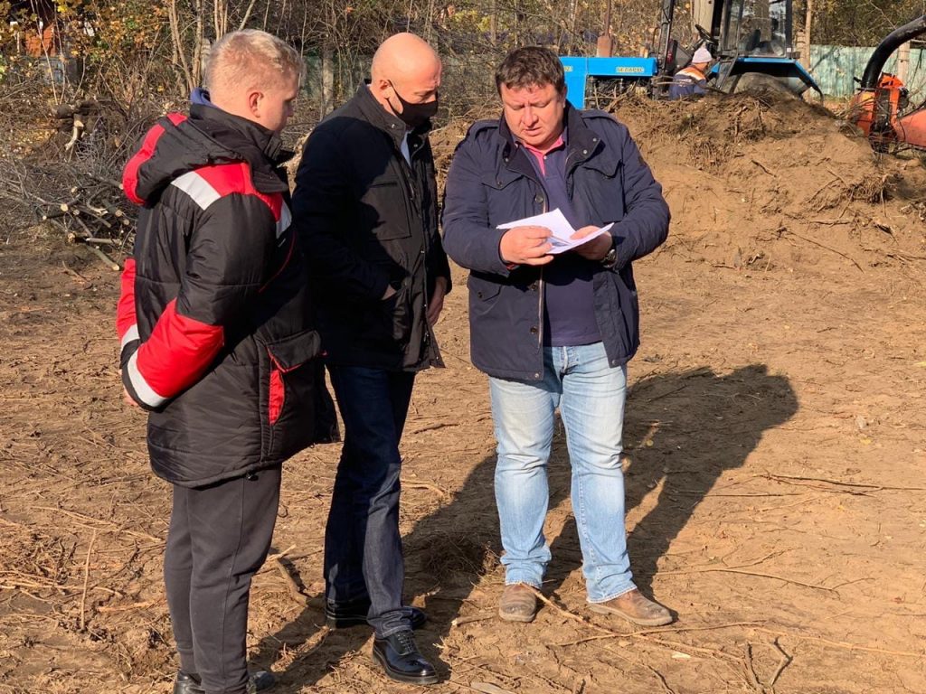 Совещание состоялось с представителями подрядной организации, которые осуществляют строительство детской площадки по ул. Полевая в п. Ильинский. В процессе встречи был проведен осмотр территории и назначены этапы выполнения работ. В настоящее время проводится очистка территории от мусора и планировка участка для будущего строительства.