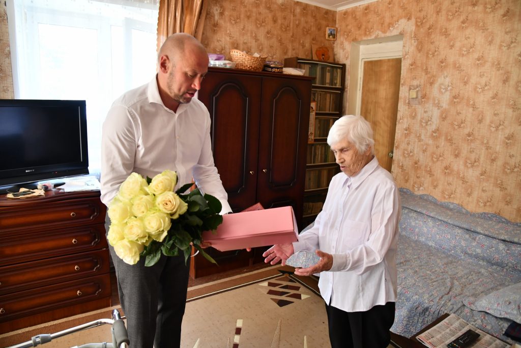 Депутат Совета депутатов Раменского городского округа, директор МКУ «ТУ Ильинский» Сергей Владимирович Демин поздравил с 90-летним юбилеем ветерана п. Ильинский, труженика тыла Новикову Ольгу Михайловну.