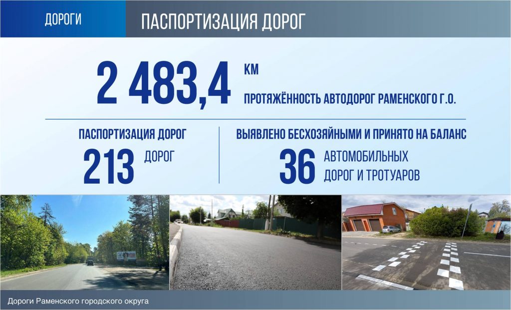 В 2022 году выявлено бесхозяйными и принято на баланс 36 автомобильных дорог и тротуаров, отремонтировано 60 автодорог, на 15 объектах выполнен ремонт тротуаров, вблизи образовательных учреждений обустроено 80 парковочных мест.