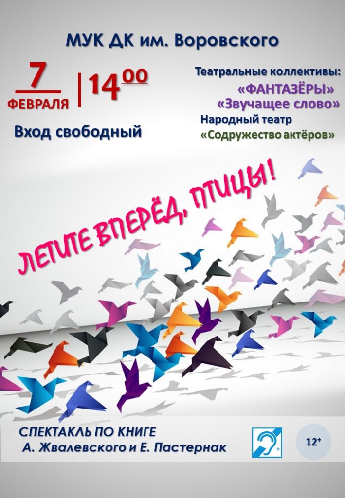 У вас загорелись глаза? Рука потянулась к смартфону? Вы открываете календарь и записываете: «7 февраля,14:00, ДК им. Воровского, спектакль театрального коллектива «Фантазёры» — «Летите вперед, птицы»?