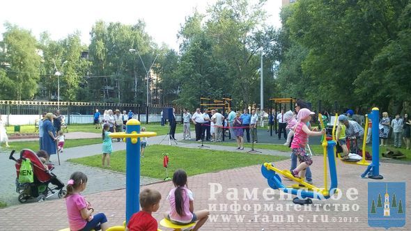 Глава района Владимир Демин перерезал красную ленточку в знак открытия площадки.