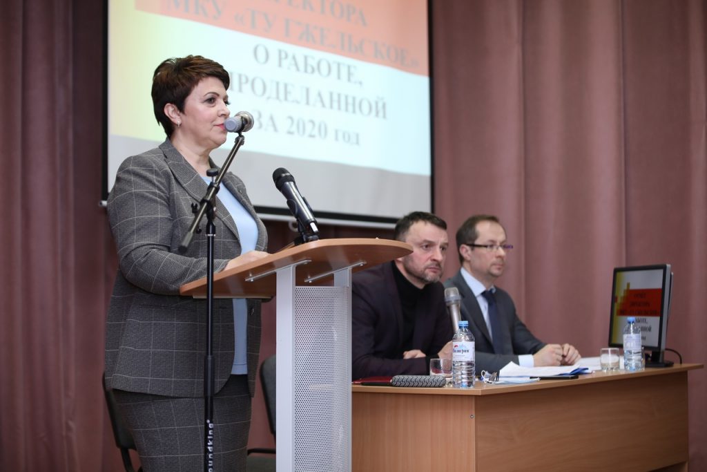 Директор ТУ «Гжельское» Галина Голинкова выступила с отчетом по итогам работы территориального управления за 2020 год. На отчете присутствовали куратор от Правительства МО Роман Терюшков, глава Раменского г.о. Виктор Неволин и жители подведомственных населенных пунктов. На начало 2021 года в 14 населенных пунктах ТУ «Гжельское» проживает около 13 тысяч жителей без учета граждан, зарегистрированных в 54 коттеджных поселках и садоводческих товариществах.