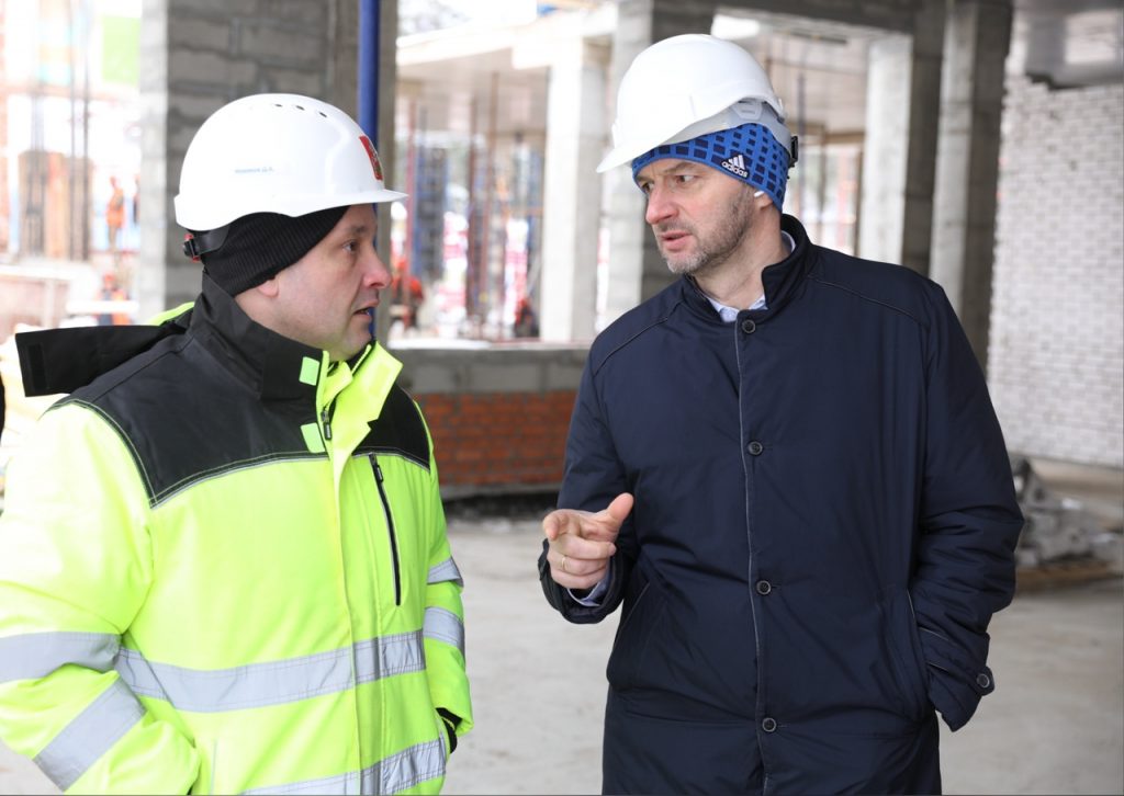 В данный момент идет возведение несущих и ограждающих конструкций, параллельно прокладываются магистральные инженерные сети. Там, где уложено покрытие, начаты работы по кровле. В третьей декаде апреля планируется закрытие оконных проемов.