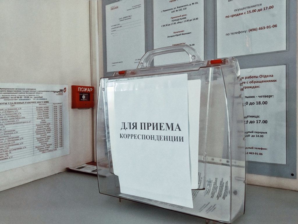 В целях минимизации непосредственного контакта граждан и работников при приеме корреспонденции в холле первого этажа Администрации установлен ящик для письменных обращений. Обращения будут рассмотрены в соответствии с законодательством РФ и законодательством МО.