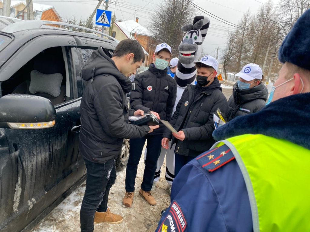 Госавтоинспекторы и юные помощникинапомнили участникам дорожного движения об опасности использования мобильных телефонов во время участия в дорожном движении с помощью информационных листовок