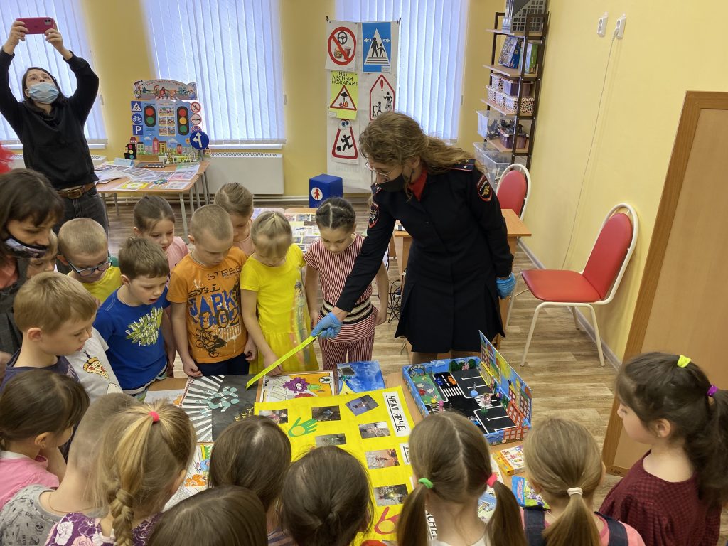 Автоинспекторы напомнили детям, какие правила безопасного поведения должен соблюдать пешеход. Дети вспомнили значения дорожных знаков и сигналов светофора, изучили различия регулируемых и нерегулируемых пешеходных переходов. Вместе с полицейскими дошкольники разобрали алгоритм поведения в различных дорожных ситуациях.В завершение мероприятия ребята продемонстрировали гостям поделки на тему безопасности дорожного движения, которые они сделали сами и разместили в здании детского сада.