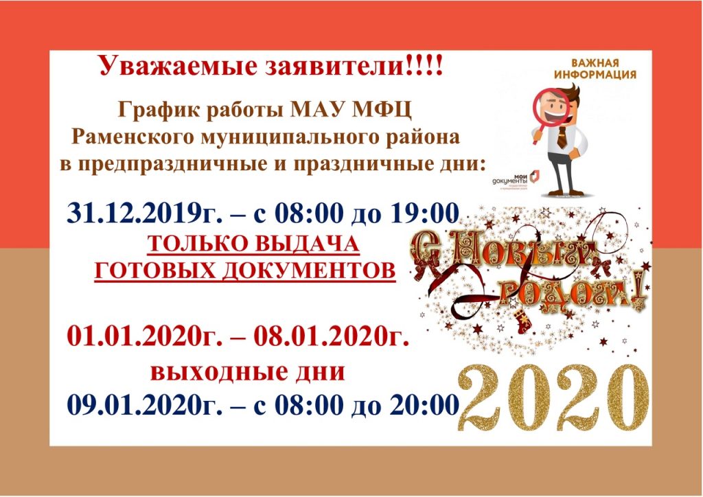 График работы Раменского МФЦ в предпраздничные и праздничные дни