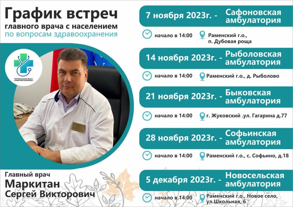 7 ноября 2023г. в 14:00 – Сафоновская амбулатория. Встреча состоится по адресу: Раменский г.о.,