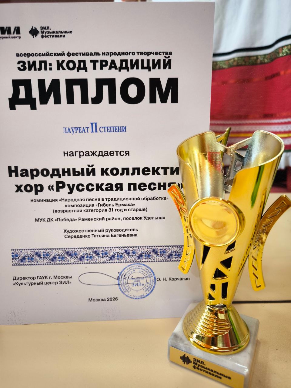 Конкурс прошёл впервые и собрал 237 участников в Культурном центре ЗИЛ в Москве. Хор «Русская песня» ДК «Победа» стал лауреатом II степени в номинации «Народная песня в традиционной обработке».