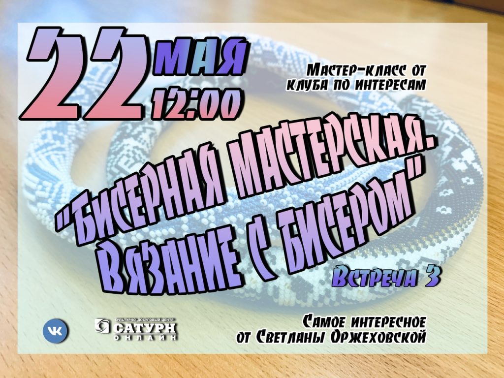 В 12:00 — «Бисерная мастерская. Вязание с бисером».