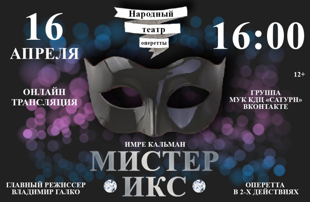 15 апреля в 17-00 состоится трансляция художественного театрализованного чтения «Елена Премудрая». 16 апреля в 16:00 состоится онлайн-трансляция оперетты «Мистер Икс» в исполнении народного коллектива «Театр оперетты».