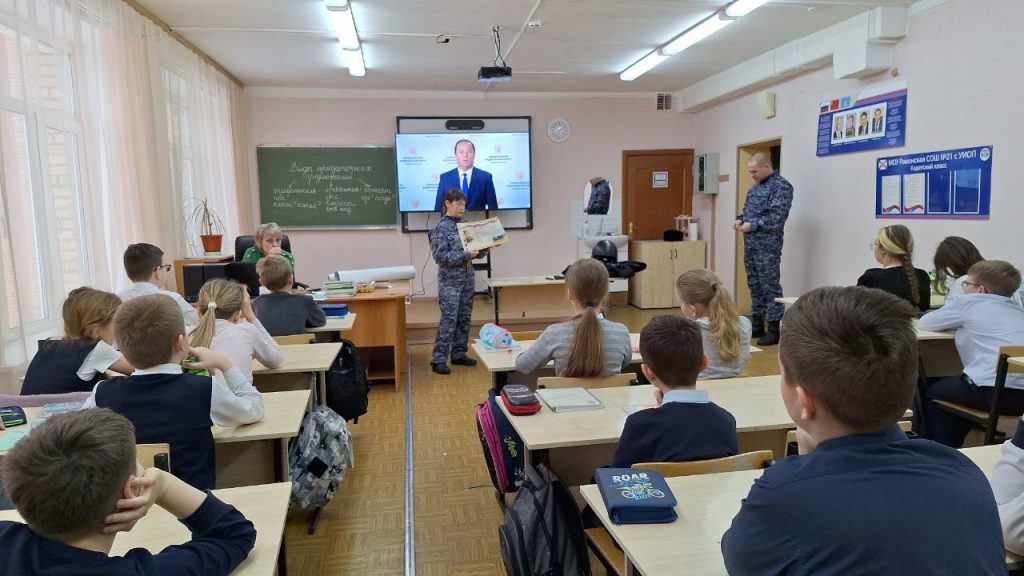 Сотрудники провели «Урок мужества». На встрече они рассказали будущим кадетам о Героях России, чьи имена нужно знать и чтить память, а также о самой службе Росгвардии.