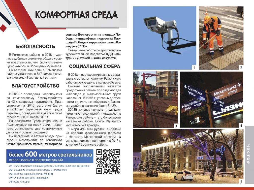 Большой объем работ традиционно выполнен в городе Раменское: устроены вертикальные клумбы, для удобства жителей и гостей города разработана и установлена система визуальной навигации, проведен капитальный ремонт двух фонтанов. Завершены работы по благоустройству бульвара Чугунова с инсталляцией «Солнечная система» с действующими солнечными часами. В этом году мы проведем масштабные работы по благоустройству общественных пространств на р.Чернавке и Бульваре искусств на ул.Чугунова.