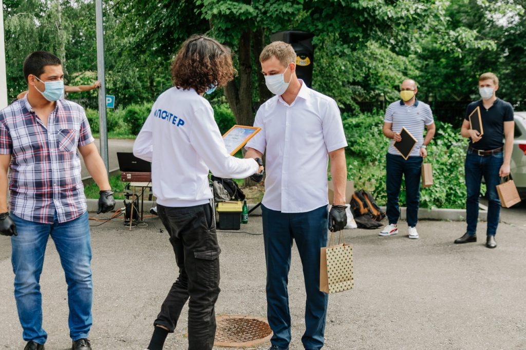 Председатель комитета Леонид Савин и директор Раменского молодежного центра Ринат Хасьянов вручили ребятам благодарственные письма и поблагодарили их за инициативность и содействие в массовом информировании жителей о проведении голосования по поправкам к Конституции РФ.