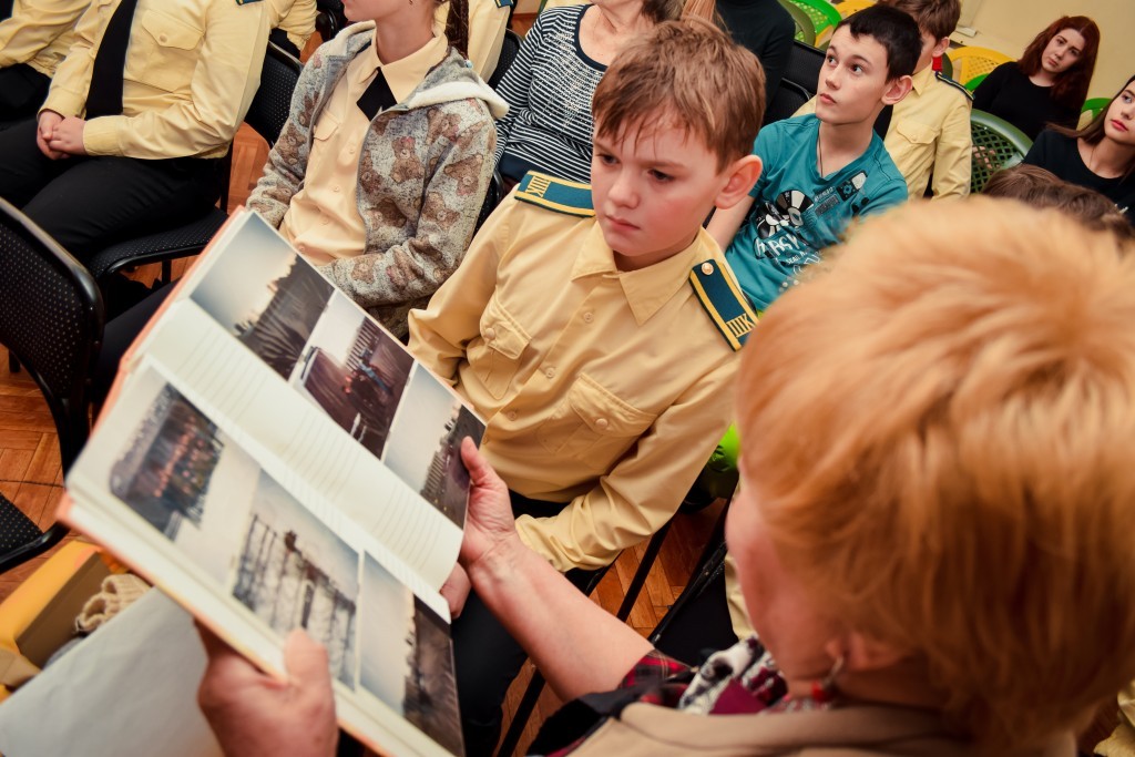 Молодёжный «Театр первопроходцев» подготовил яркое выступление для учеников Новосельской школы и школы №6 и, конечно же, ветеранов, среди которых была Нина Викторовна Кекс, в раннем детстве жившая в блокадном Ленинграде.