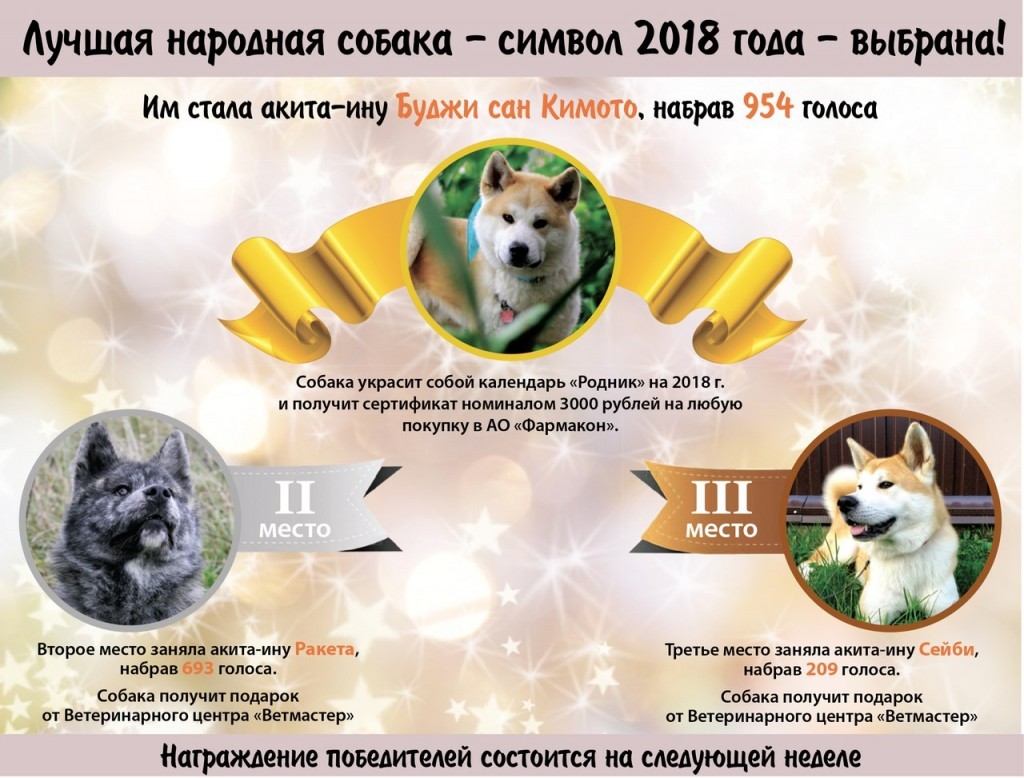 По итогам голосования победителем конкурса #народнаясобакарам «Лучшая народная собака Раменского района — символ 2018 года» стала акита-ину Буджи Сан Кимото!!!